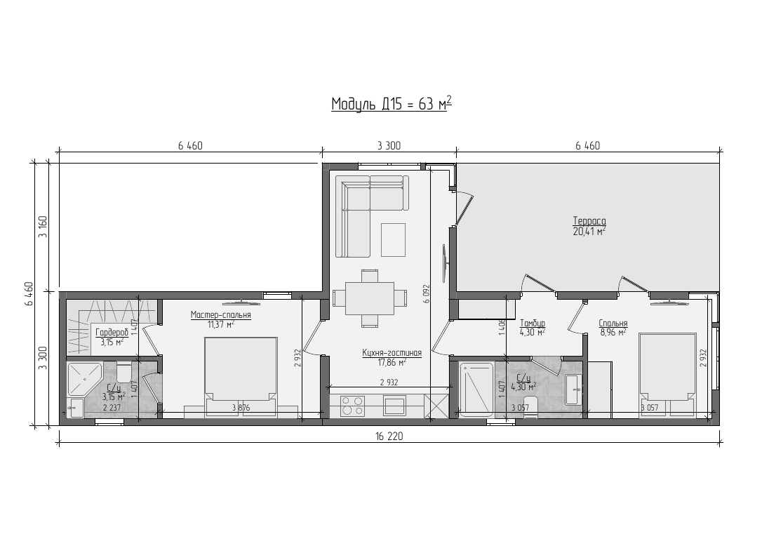 Гармония современного дизайна, функциональности и уюта. Стильные фасады и эргономичная планировка создают простор и комфорт. Энергоэффективные технологии и возможность расширения делают его экономичным и адаптивным. Это дом, где каждая деталь работает на ваше счастье