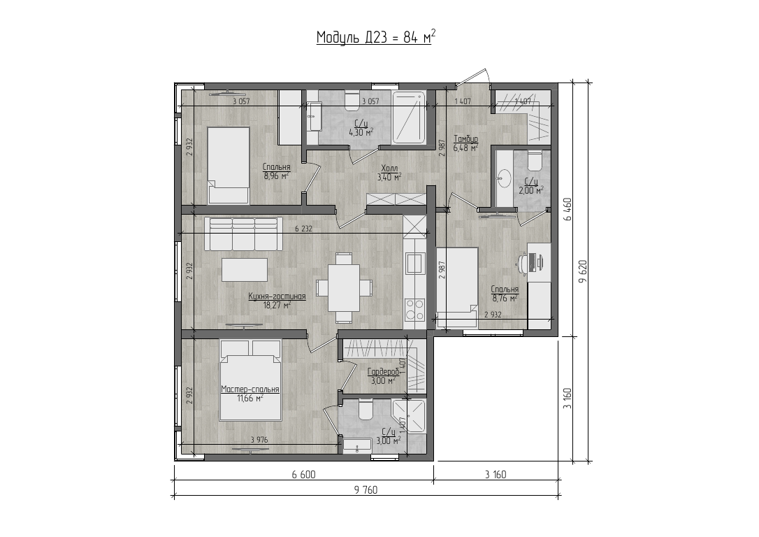Гармония современного дизайна, функциональности и уюта. Стильные фасады и эргономичная планировка создают простор и комфорт. Энергоэффективные технологии и возможность расширения делают его экономичным и адаптивным. Это дом, где каждая деталь работает на ваше счастье