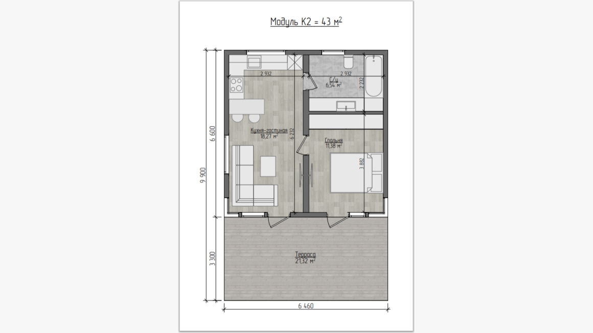 Удобный вариант для дачного отдыха. Здесь есть все, что необходимо для комфорта: спальная, кухонная зона, санузел и небольшая терраса.